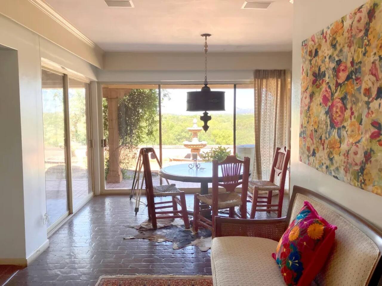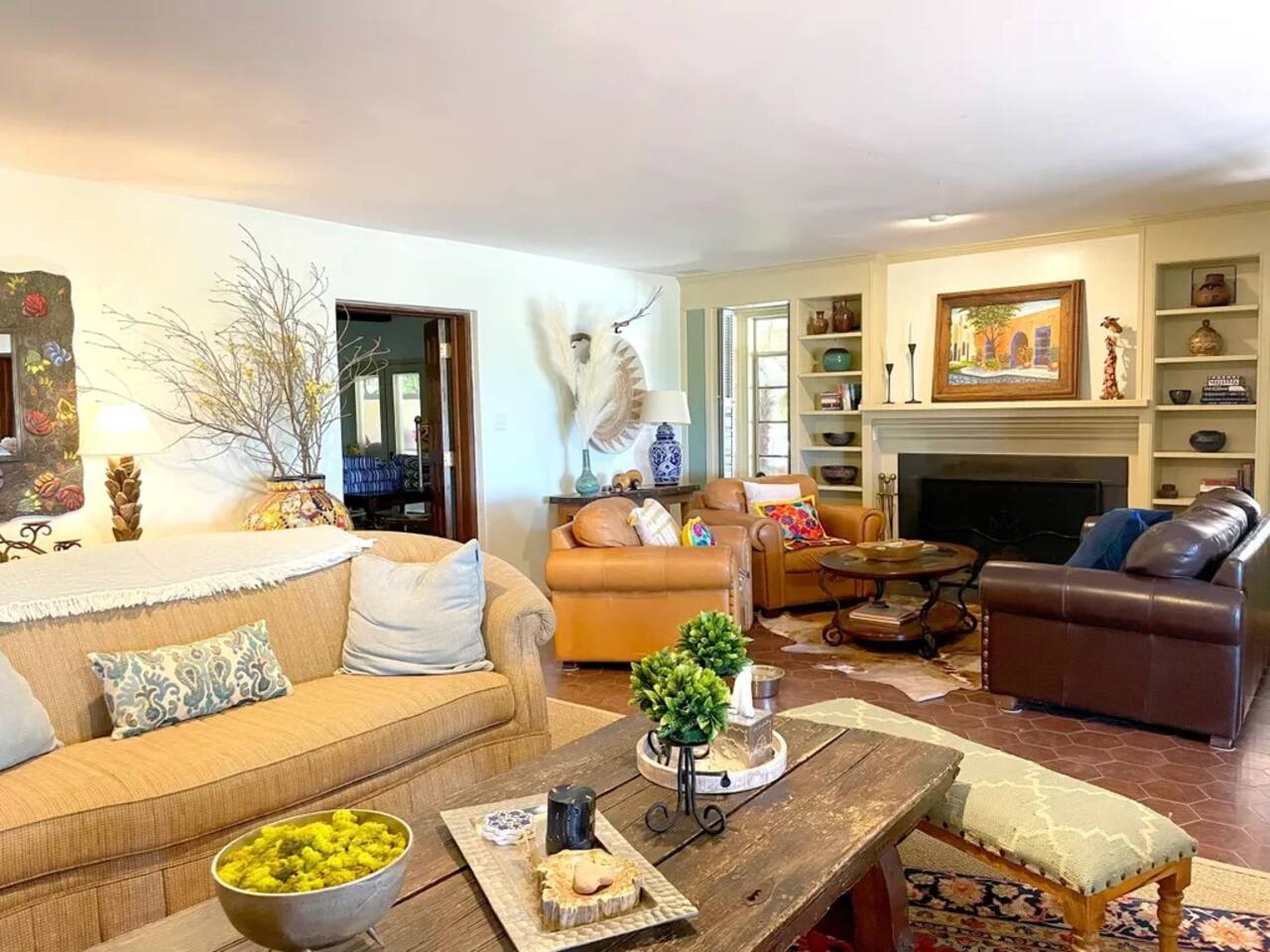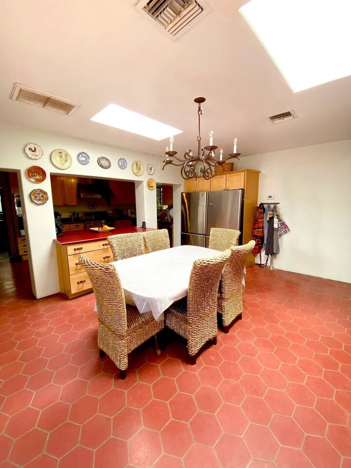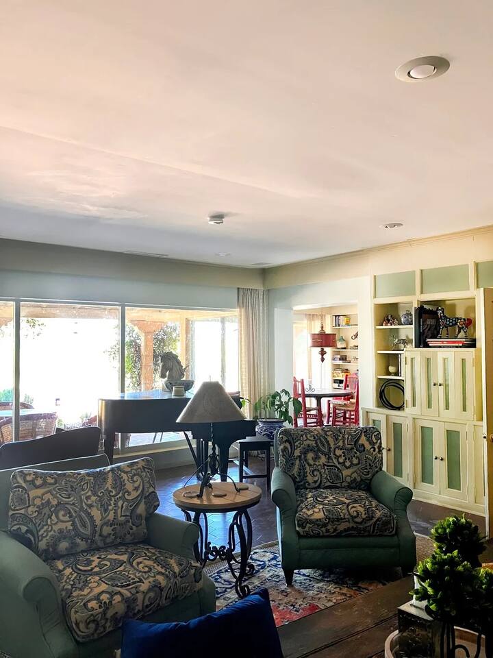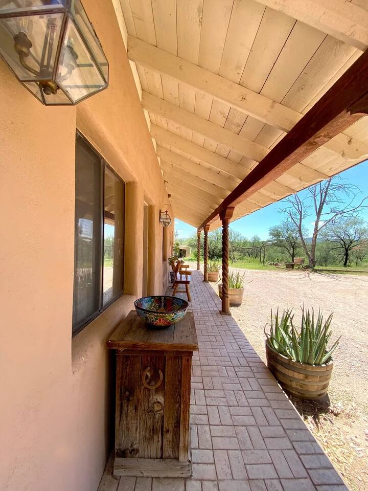 Hacienda Monarca • BBQ, Fire Pit & Pool ★☆ ABOUT THIS SPACE ☆★ Step into Hacienda Monarca, a one-of-a-kind desert retreat where rustic charm meets vibrant artistry. Surrounded by colorful murals and handcrafted details, this stunning home invites you to relax and soak in the serenity of the Sonoran Desert. From terracotta floors to cozy furnishings, every corner has been thoughtfully designed to offer you comfort and style.