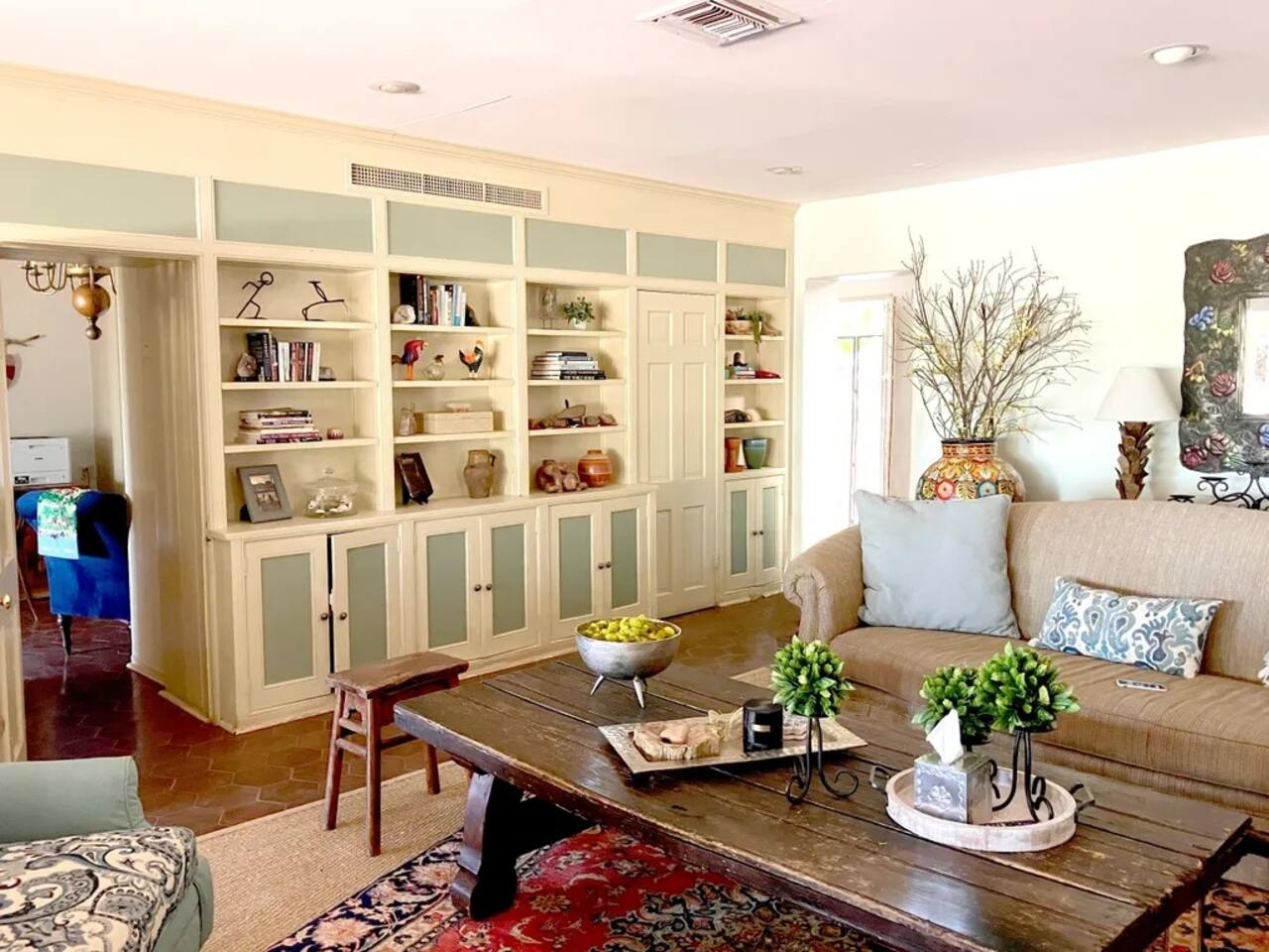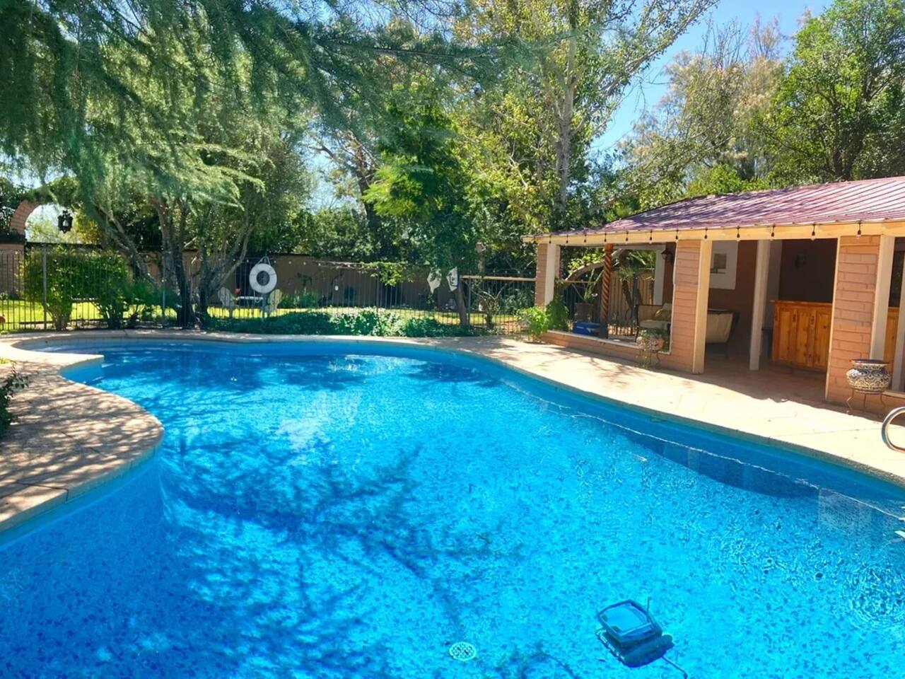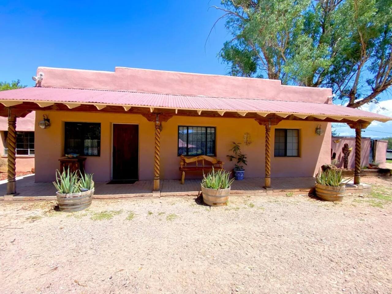 Hacienda Monarca • BBQ, Fire Pit & Pool ★☆ ABOUT THIS SPACE ☆★ Step into Hacienda Monarca, a one-of-a-kind desert retreat where rustic charm meets vibrant artistry. Surrounded by colorful murals and handcrafted details, this stunning home invites you to relax and soak in the serenity of the Sonoran Desert. From terracotta floors to cozy furnishings, every corner has been thoughtfully designed to offer you comfort and style.